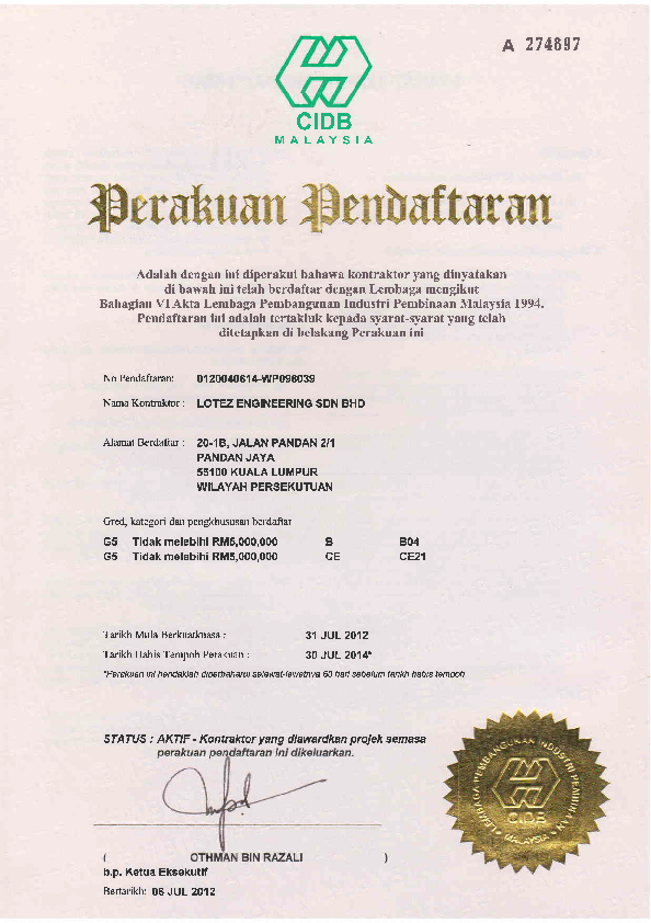 Lotez Engineering Sdn. Bhd. was incorporated operating field of roll forming thin gauge steel material by providing complete "Design and Build" service specially to cater for roof truss fabrication of Government Instituion projects and general housing development. With our team of dedicated and skill professionals, our business service also extending to the design, supply, fabrication and erection of structural steel works for factory and commercial building right from the inception to hand over. We accept the challenge within the industry and always bring our customer to the leading edge benefit with tomorrow's technology to better ourselves, our future for long term relationship with our most important partner, our customer.With the experienced and fully dedicated member of staff we committed to "Total customer satisfaction through quality, expertise, service and committed to both customer and the awarded project"